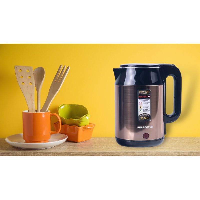 - Dung tích 2.5 lít, công suất 1500W: Ấm đun Perfect có dung tích 2.5 lít giúp người dùng đun được một lượng nước đủ để sử dụng trong ngày. Sản phẩm hoạt động với công suất tối đa là 1500W, rút ngắn thời gian nấu nước và tiết kiệm điện hiệu quả.