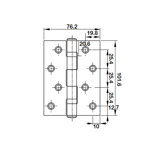 - Kích thước bản lề: 102x76x2.5 mm (4”x3”x2.5mm )