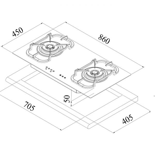 – Kích thước bếp: 860 x 450mm.