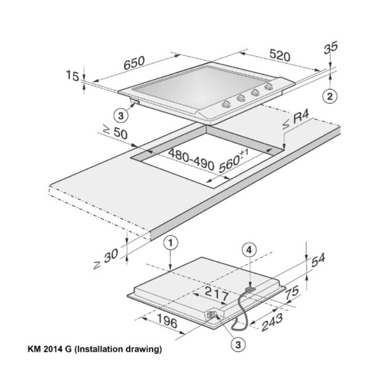 Bếp Gas Miele 4 vùng nấu KM 2014G lắp âm