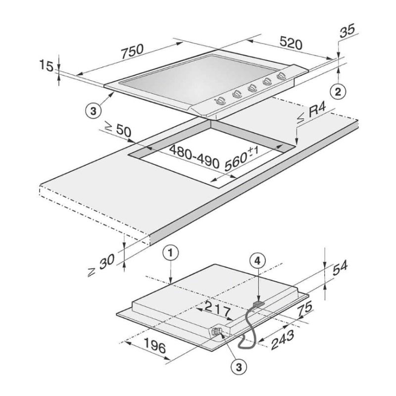 - Kích thước lắp đặt (C x R x S): 30 x 560 x 480 mm