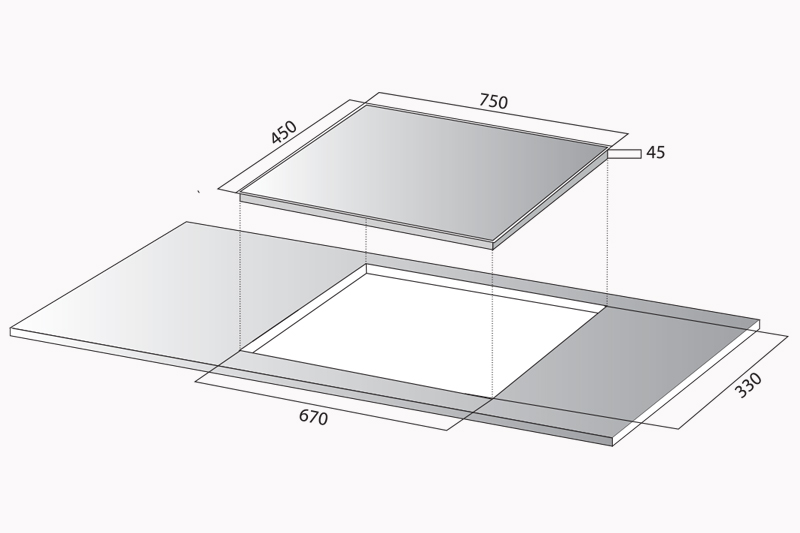 – Mặt kính nguyên khối màu đen, vát cạnh Eurokera chính hãng