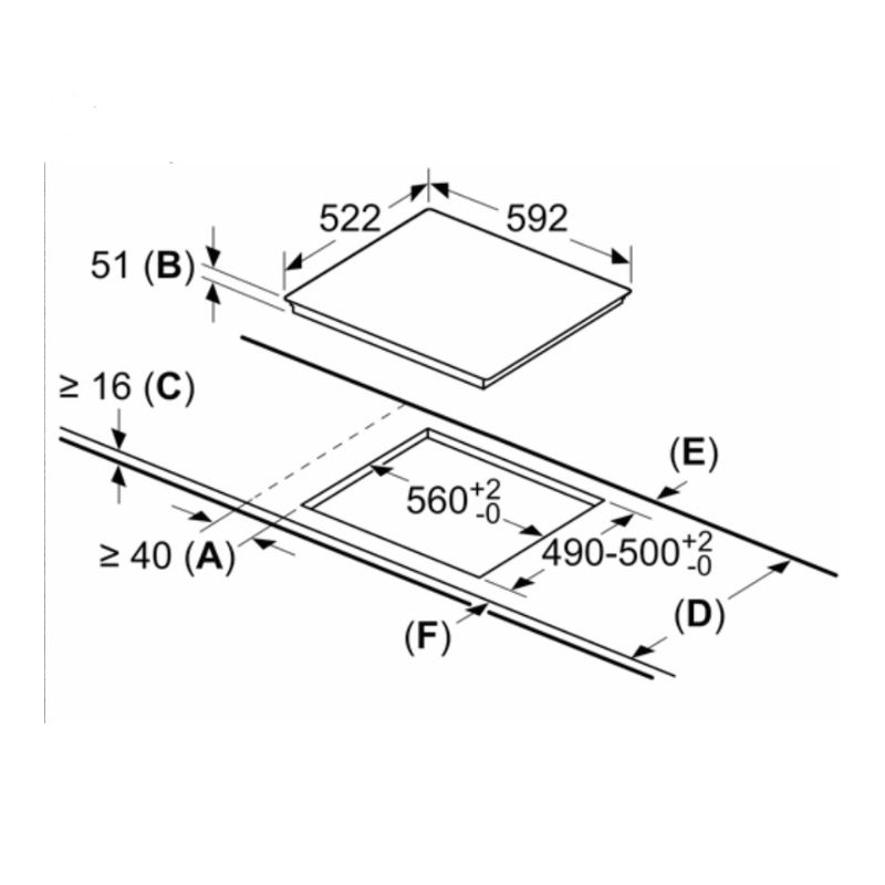 Kích thước cắt đá (CxRxS) | 51×560-560×490-500mm |