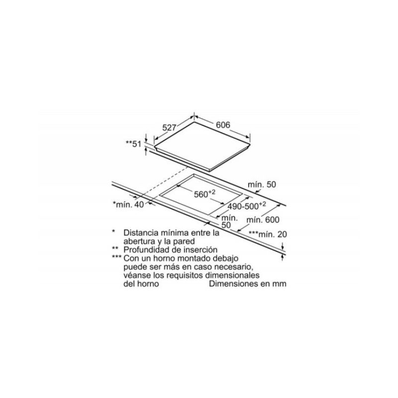 - Độ dày mặt bếp tối thiểu: 16 mm