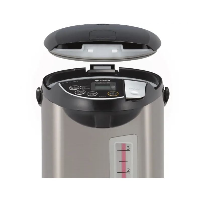 - Thiết kế tiện dụng: Bình thủy điện TIGER PDU-A30W được thiết kế tinh tế, sang trọng, phù hợp với gia đình có con nhỏ hay người già cần sử dụng nước nóng thường xuyên. Thân bình được làm bằng thép không gỉ có độ bền cao, tăng khả năng giữ nhiệt và hạn chế bị biến dạng khi có va chạm, khi sử dụng trong một thời gian dài vẫn sáng bóng như mới. Trên thân bình còn có thang báo mực nước, giúp bạn dễ nhận biết được lượng nước cần dùng khi có nhu cầu.