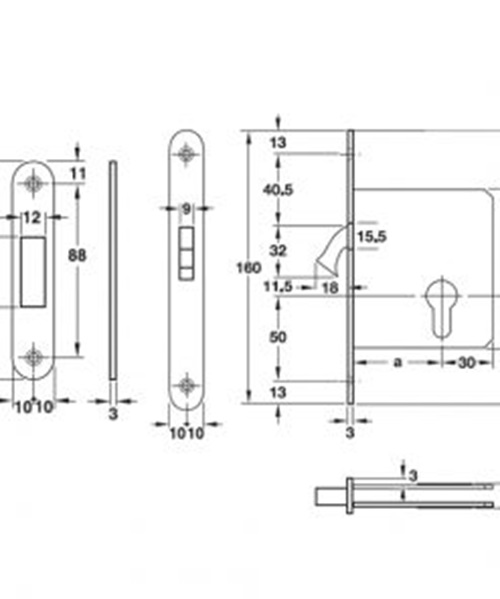Thông số kỹ thuật của bộ khóa tay nắm cửa trượt WC Hafele 499.65.108