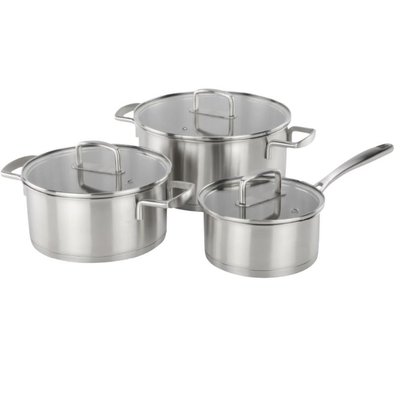 Bộ 6 món tiện lợi: Gồm 2 nồi, 1 quánh và 3 nắp với kích thước Ø24 cm, Ø20 cm và quánh Ø16 cm, phù hợp chế biến nhiều món ăn.