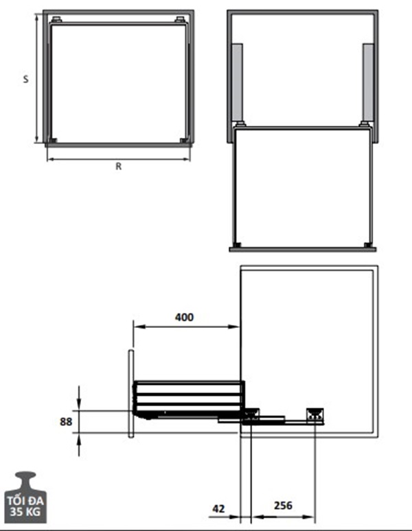 - Chiều sâu lọt lòng ( S ) : tối thiểu 500mm