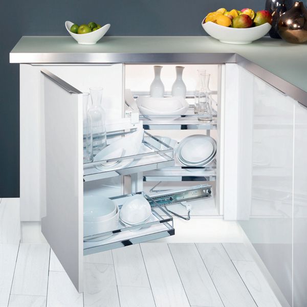 Bộ rổ kéo góc Magic Corner xoay trái, khay Arena Hafele 546.17.004