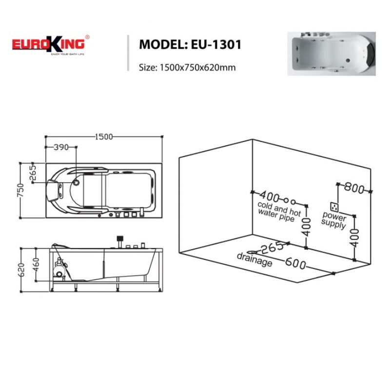 - Đem đến cho không gian phòng tắm một điểm nhấn đặc biệt. Nơi bạn được nâng niu, ôm ấp quên hết đi bao bộn bề cuộc sống. Bồn tắm massage EU-1301 sẽ là điều mà bạn đang tìm kiếm.