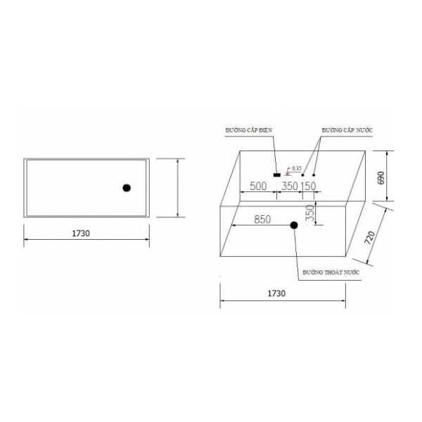 – Kích thước (DxRxC): 1730 x 720 x 690mm