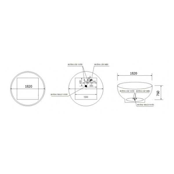 – Kích thước: Đường kính: 1820 mm; Chiều cao: 760 mm.