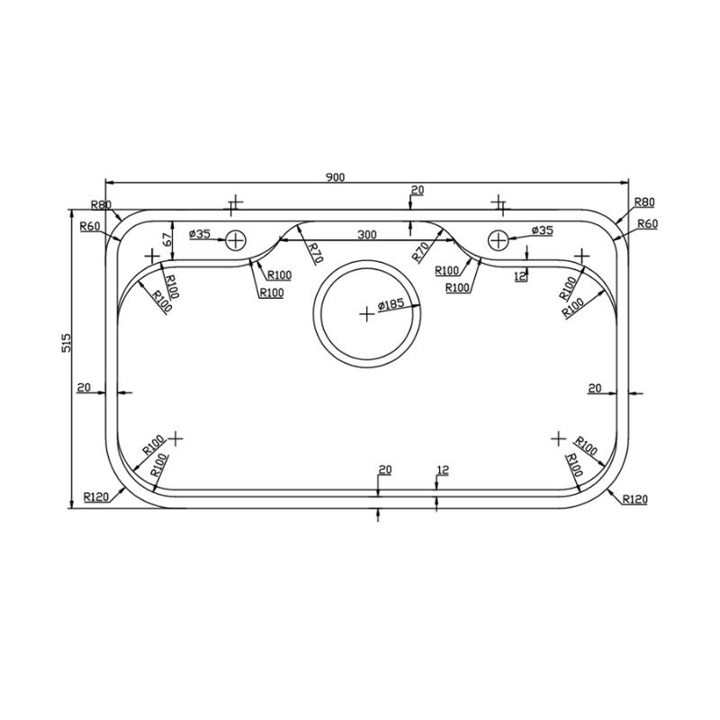 Kích thước chậu (D x R x C) | 900 x 515 x 220 mm |