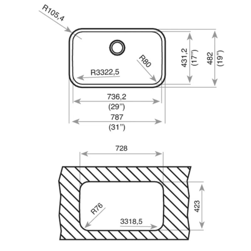Kích thước cắt đá (W x D) | 728 x 423 mm |