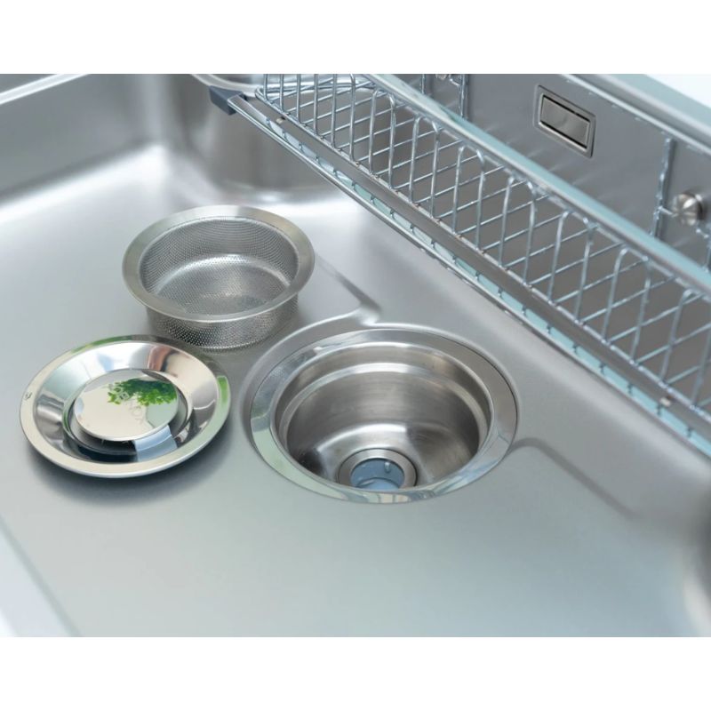 - Bát rác 185 mm kết hợp hệ thống lọc 3 lớp: Trang bị bát rác kích thước lớn giúp thoát nước nhanh, hạn chế ứ đọng. Bộ lọc 3 lớp giữ lại cặn bẩn và thức ăn thừa, góp phần bảo vệ đường ống và đảm bảo vệ sinh.
