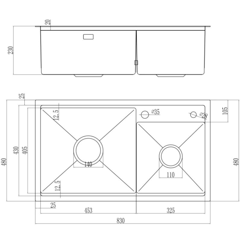 - Độ dày 1.2 mm – Chắc chắn, giảm rung ồn: Kết cấu inox dày dặn cho khả năng chịu lực tốt, hạn chế biến dạng và giảm tiếng ồn trong quá trình xả nước hoặc va chạm dụng cụ, góp phần kéo dài tuổi thọ sản phẩm.