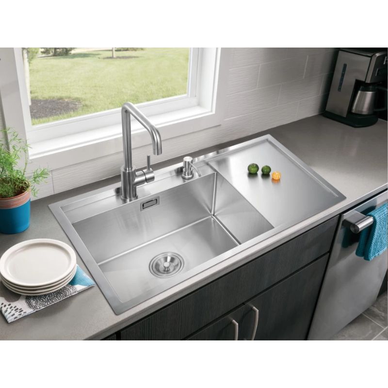 - Thiết kế 1 hố đi cùng bàn chờ và phần giật cấp tinh tế mang lại sự linh hoạt khi sử dụng, phù hợp với nhiều phong cách nội thất bếp khác nhau.