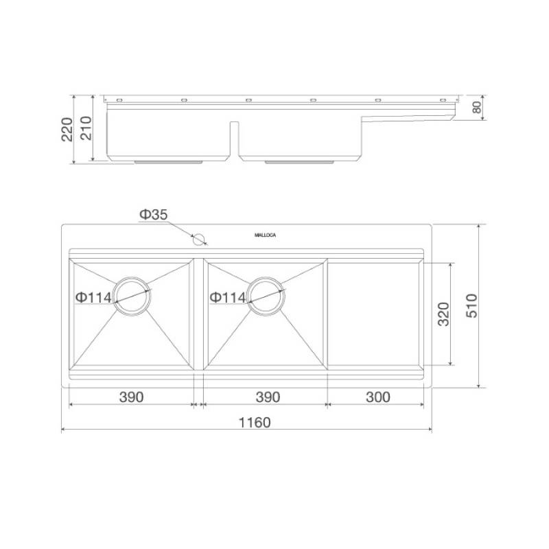 Chậu rửa chén Malloca Slide MS1162R là dòng chậu cao cấp thuộc series Slide với thiết kế hiện đại và tiện dụng. Sản phẩm có kích thước lớn 116 cm, thiết kế 2 hố rửa rộng rãi giúp tối ưu không gian sơ chế và rửa chén hằng ngày. Được làm từ inox 304 cao cấp dày 1.2 mm, chậu mang lại độ bền vượt trội, khả năng chống gỉ sét và dễ dàng vệ sinh.