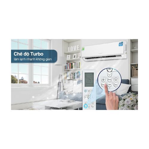 - Máy lạnh sẽ hoạt động với công suất lớn nhằm nhanh chóng đạt nhiệt độ cài đặt nhờ có chế độ Turbo.