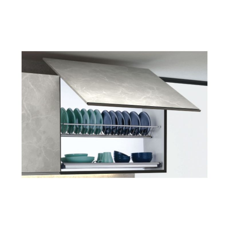 - Tầng trên đựng đĩa với thiết kế dạng nan chữ V ngược giúp dễ dàng úp đĩa, đặc biệt là các loại bát đĩa sâu lòng. Tầng dưới được thiết kế dạng lượn sóng và khoảng cách giữa các nan rộng hơn, thuận tiện hơn trong việc úp bát, cốc chén