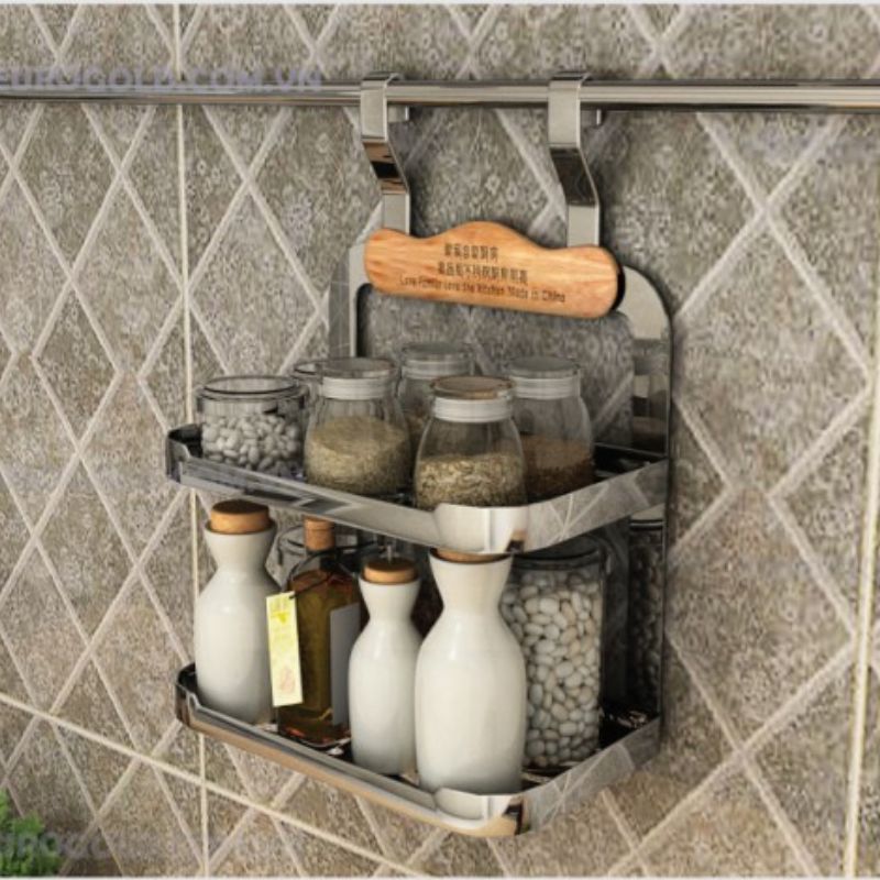 - Thiết kế với 2 tầng giá rộng rãi để được nhiều chai lọ gia vị tiện dụng.