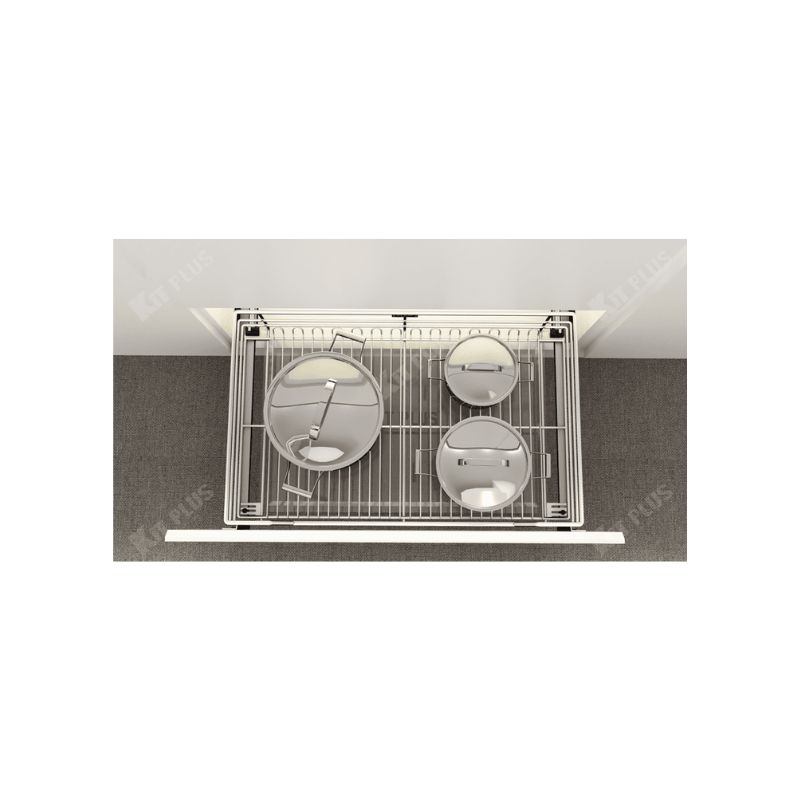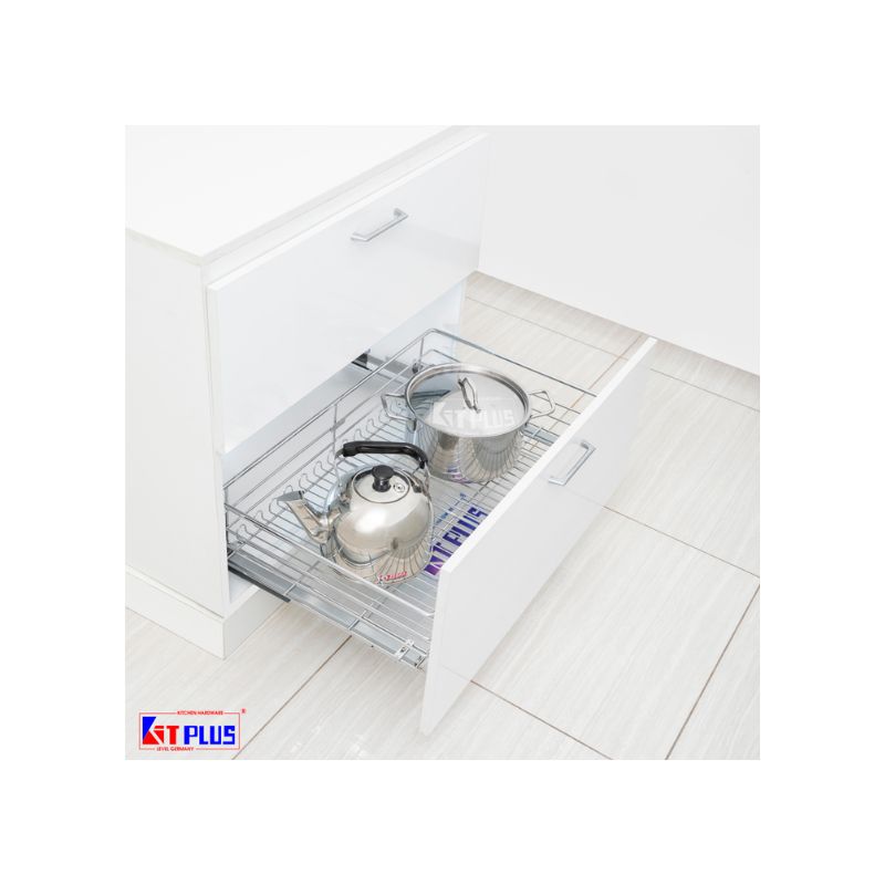 - Giỏ inox nan tròn có chiều sâu lớn tận dụng tối đa chiều sâu của tủ bếp.