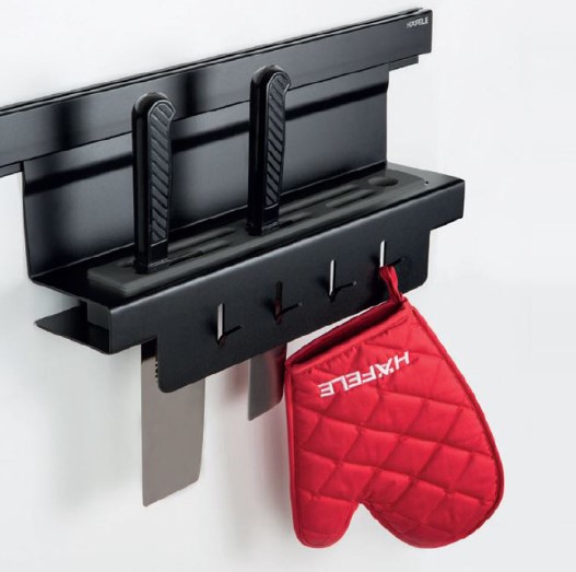 Kệ để dao có móc treo Hafele 523.00.330 thiết kế Phần móc có thể được gắn vào bên trên hoặc bên dưới thanh treo tường. Sản phẩm được nhập khẩu và phân phối chính hãng tại Hệ thống Bếp uy tín số 1 Việt Nam