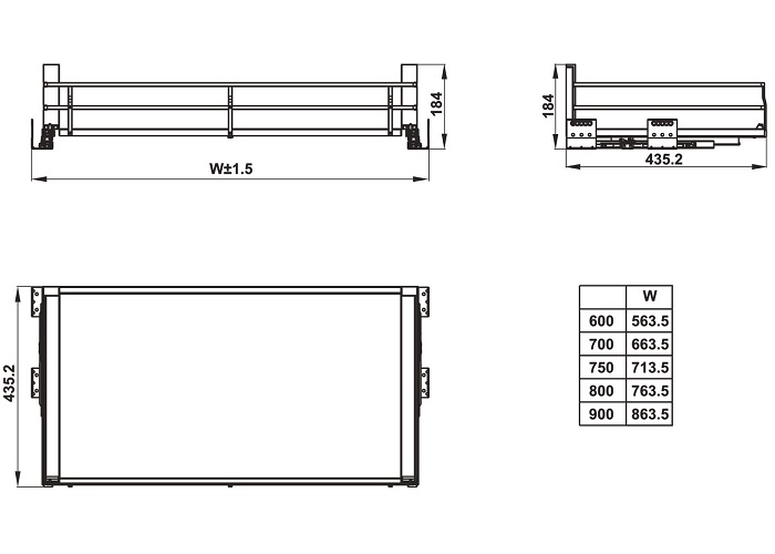 – Kích thước sản phẩm: R764 x S435 x C184 mm