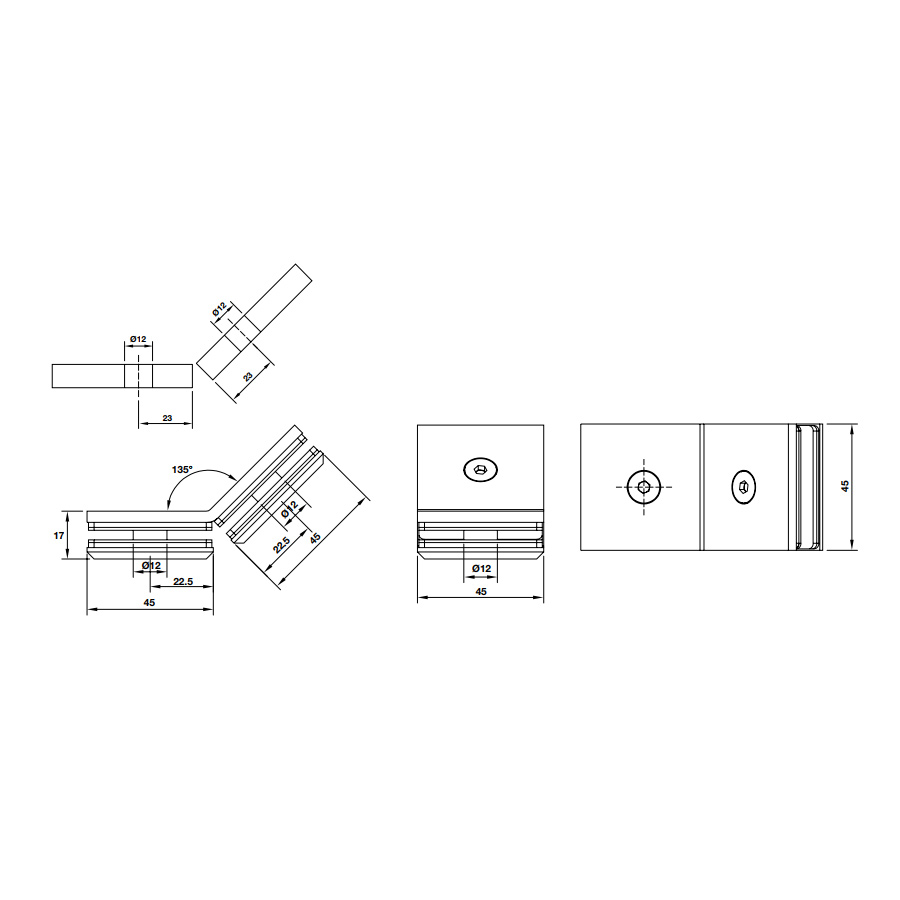 - Kẹp kính kính 135 Hafele 981.77.915 phù hợp cho cửa mở trái và mở phải