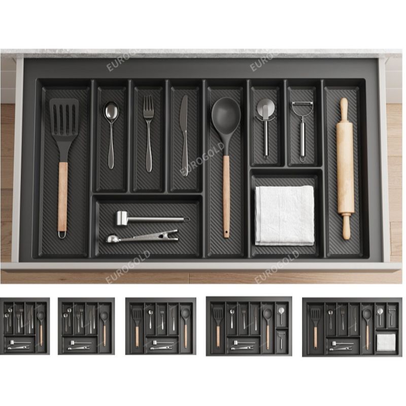 - Kích thước thông thường của khay chia thìa nĩa nhựa cao cấp được thiết kế phù hợp để dễ dàng tích hợp vào không gian tủ bếp thông dụng. Điều này giúp sản phẩm phù hợp với nhiều không gian bếp khác nhau, từ nhỏ đến lớn.