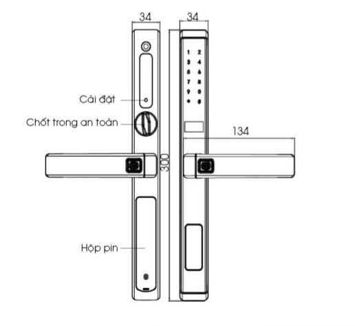 – Kích thước khóa: 34xH300 mm
