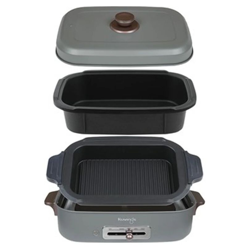 - Lẩu điện Kuvings KMG-200B có có thiết kế nhỏ gọn, sang trọng, hiện đại và an toàn theo phong cách “Newtro”. Kết hợp với gam màu xám xanh làm chủ đạo, mang đến cảm giác tinh tế hơn cho không gian bếp nhà bạn.