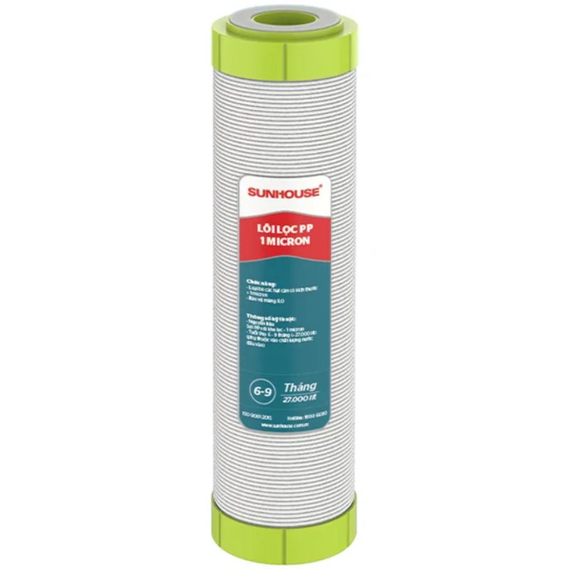 - Chất liệu an toàn với người sử dụng: Sản phẩm được cấu tạo từ sợi PP (Polypropylene) được nén chặt đến khi khe hở đạt kích thước chỉ còn 1µm (Tương đương 0.001 mm). Lõi lọc có độ bền cơ học cao, chịu được ăn mòn và các hóa chất khác trong nước. Sản phẩm tương đối an toàn và là bộ phận không thể thiếu trong một số model máy lọc nước Sunhouse, giúp cho quá trình lọc nước đạt hiệu suất cao.