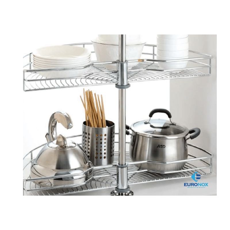 Mâm xoay góc 1/2 là một phụ kiện giá góc giúp tối ưu không gian góc chết của tủ bếp. Giá có 2 tầng mỗi tầng có thiết kế là 1/2 hình tròn nên rất thuận tiện đặt để hay lấy đồ đạc. Tìm hiểu rõ hơn sản phẩm này qua thông số bên dưới nhé!