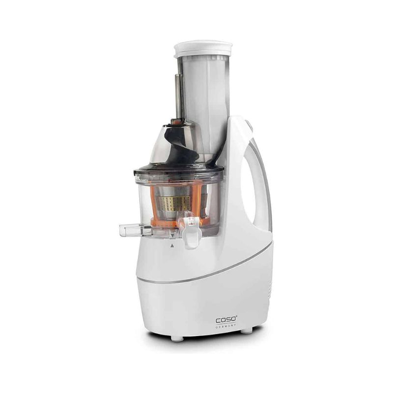 - Chuẩn bị nước trái cây tươi không mất nhiều thời gian với Caso SJW400. Rửa và cắt trái cây hoặc rau quả một chút, sau đó cho vào miệng của máy ép trái cây. Máy sẽ nghiền các sản phẩm, cho ra nước ép chính nó. Nếu bạn muốn, bạn có thể để đồ uống trong máy ép trái cây – chỉ cần đóng nắp vòi mà nó đổ vào bát. Đây là giải pháp tối ưu cho việc pha chế các loại cocktail trái cây hoặc rau, khi bạn muốn trộn kỹ các loại nước ép.
