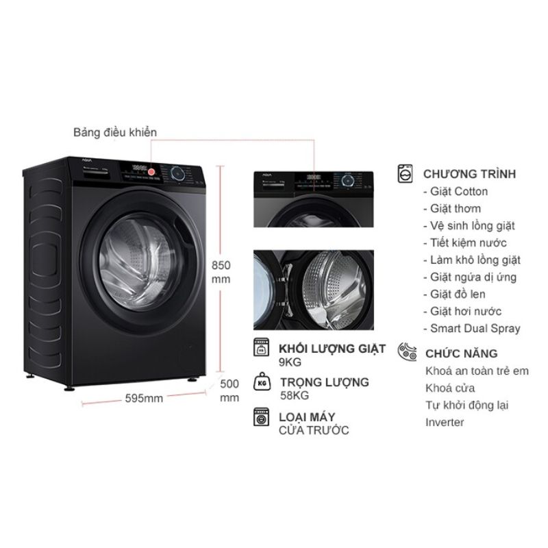 - Khối lượng giặt 9 kg