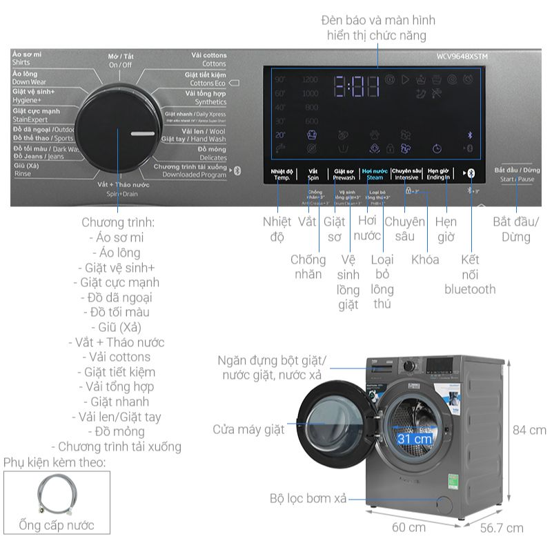 Máy Giặt Beko Inverter 9 Kg WCV9648XSTM cửa trước