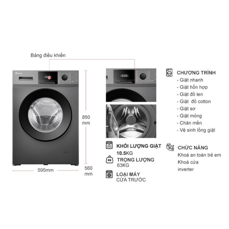 Máy Giặt Casper Inverter 10.5 Kg WF-105VG5 cửa trước