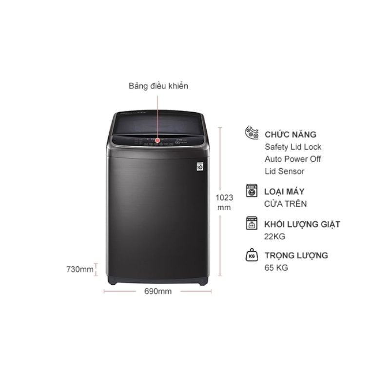 - Thiết kế cao cấp, khối lượng giặt khổng lồ lên đến 22Kg: Máy Giặt LG 22 Kg TH2722SSAK vời thiết kế cao cấp và hiện đại. Với sắc đen mạnh mẽ, sản phẩm thêm phần tinh tế.