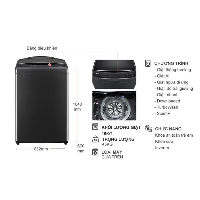 - Khối lượng giặt 19 kg phù hợp với gia đình đông người (trên 7 thành viên).