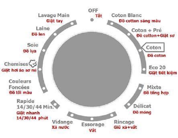 Chương trình giặt đồ Cotton và giặt sơ (Coton + Pré) của máy giặt 11kg Rosieres RILS121132DCR-04 được thiết lập trong các chương trình khi giặt đồ rất bẩn. Theo đó, quần áo sẽ được giặt sơ trước một lần với nước trước khi vào chu trình giặt chính, việc này sẽ giúp giảm tối đa vết bẩn trên đồ cotton sáng màu và đẩy được hết các vết bẩn dễ dàng hơn. Chương trình giặt sơ cũng được sử dụng riêng khi bạn muốn làm sạch quần áo lâu ngày không mặc đến, hoặc đọ bẩn cực ít. Ở chương trình này, bạn nên cho thêm vào khoang số 1 khoảng 20% chất giặt của chu trình chính để giặt sơ hiệu quả. - Giặt đồ len