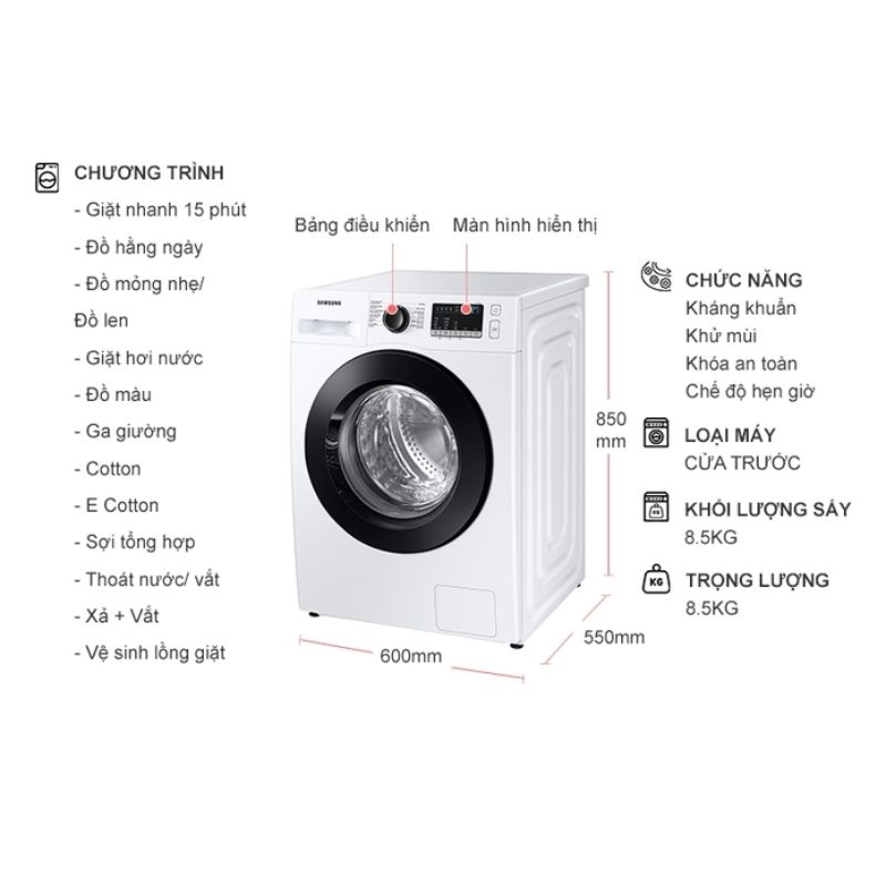 - Khối lượng giặt: 8.5 Kg