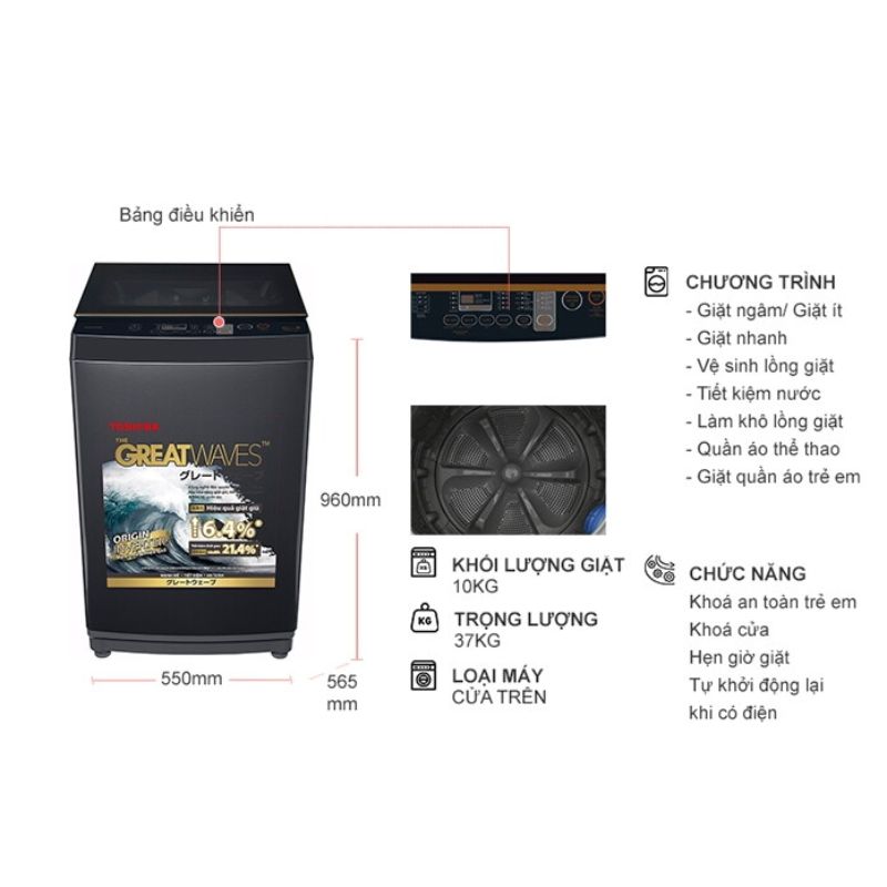 - Giặt siêu sạch, bảo vệ sợi vải tối ưu với công nghệ The Great Waves