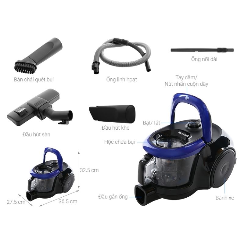 - Thương hiệu nổi tiếng Hàn Quốc: Máy hút bụi Samsung mang lại chất lượng và độ bền cao, đã được kiểm nghiệm qua thời gian sử dụng, đáp ứng nhu cầu vệ sinh của gia đình hiện đại.