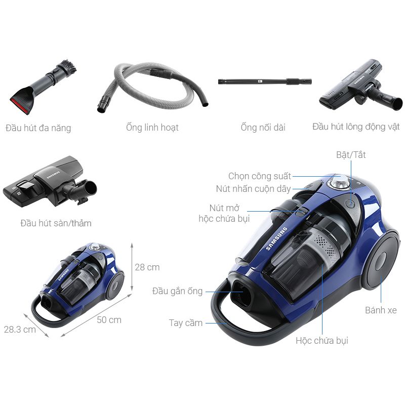 - Công suất Công suất mạnh mẽ 2200W tạo ra lực hút 430W giúp máy làm sạch bụi bẩn hiệu quả, tiết kiệm điện năng tối đa cho người dùng.