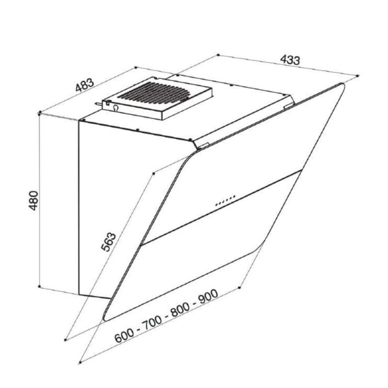 Kích thước máy hút mùi áp tường Upscale DONATELLO