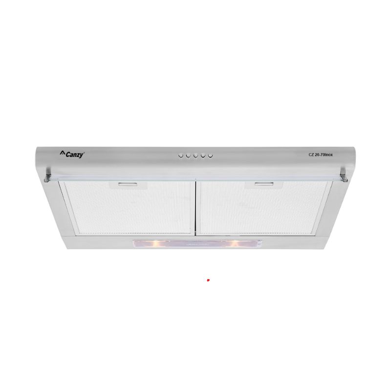 - Máy hút mùi Canzy CZ 2070I có thiết kế âm tủ nhỏ gọn, tinh tế, đem lại không gian sang trọng cho căn bếp hiện đại. Máy có kích thước (RxS) mm: 700×290; Ống hút khói đường kính Ø 150 mm (Ø 120 mm kèm theo).