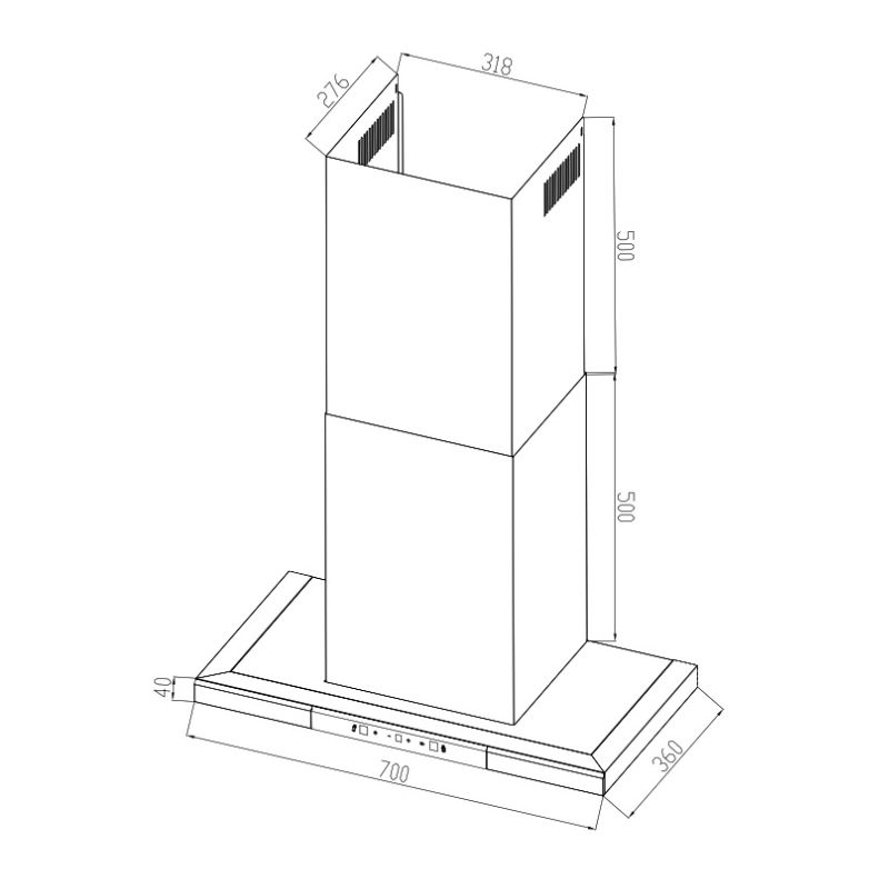 | Tiện ích | Máy hút mùi chữ T mặt kính đen bo viền inox Lưới lọc bằng inox Lọc khử mùi than hoạt tính Động cơ Ultra low noise DC, siêu êm, cực tiết kiệm năng lượng |