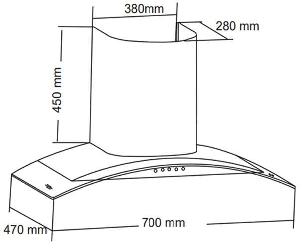 – Máy hút mùi gắn tường, kiểu dáng kính cong