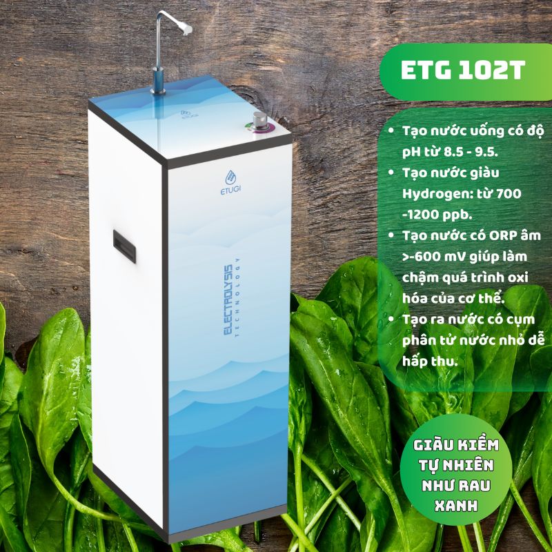 Nước ion kiềm là phát minh của các nhà khoa học Nhật Bản vào năm 1940 và được sử dụng rộng rãi tại Nhật Bản bởi tính kiềm tự nhiên như rau xanh và khả năng chống oxy hóa tuyệt vời nó mang lại. Hơn thế nữa qua một số thử nghiệm lâm sàng, nước ion kiềm còn được công nhận là có tác dụng góp phần hỗ trợ cải thiện các bệnh liên quan đến đường ruột như đau dạ dày, trào ngược dạ dày, rối loại tiêu hóa, táo bón…. . Hầu hết trên thị trường hiện nay chỉ sử dụng các máy lọc nước ion kiềm nhập khẩu với giá thành đắt đỏ và không phù hợp với đặc tính nguồn nước của Việt Nam dẫn đến việc chất lượng nguồn nước đầu ra chưa thực sự được đảm bảo. Etugi tự hào là đơn vị tiên phong trong công nghệ tạo nước ion kiềm bằng cách điện phân trực tiếp nước R.O cho ra nguồn nước an toàn phù hợp với nguồn nước tại Việt Nam.